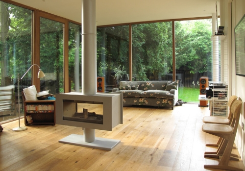 Moderna peć na drva je centralna tačka dnevnog boravka. Cik-cak stepenište od hrastovine spaja dva nivoa objekta, sa staklenim svetlarnikom koji osvetljava put. Sve spavaće sobe imaju prelepe poglede na bujno zelenilo koje okružuje kuću.