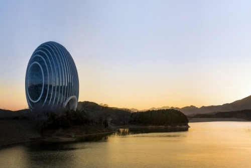 Buđenje sa izlazećim suncem je jedna stvar, ali buđenje unutar izlazećeg sunca je sasvim druga stvar. Međutim, posetioci nedavno završenog Kempniski hotela na Jankju jezeru u Kini mogu upravo to da urade. Hotel je projektovan tako da izgleda kao izlazeće sunce iznad Jankju jezera.