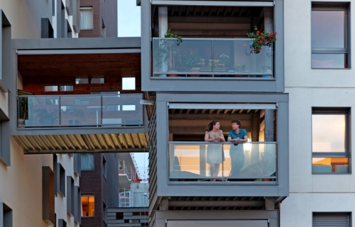 Svaki stan ima spoljašnju, zatvorenu prostoriju koja je prikačena za stan i može se koristiti u svim godišnjim dobima, bilo kao balkon ili kao dodatna prostorija u stanu. Zeleni krov pokriva delove zgrade, a stanari i gosti hotela imaju pristup uređenom zelenom dvorištu u kome mogu uživati u pogledima na Senu.
