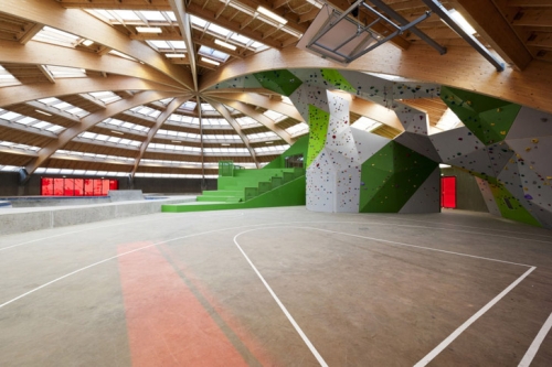 Sa rasponom od preko 40 metara, krov pokriva veliki otvoreni prostor koji se može koristiti za različite tipove sporta, kao što je vožnja skejtborda, slobodno penjanje i ulični basket.