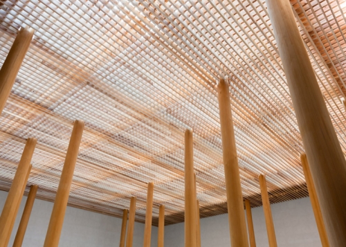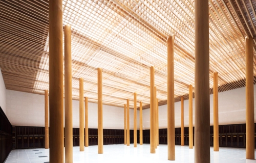 Arhitektonska firma Furumori Koichi Architectural Design Studio je projektovala proširenje postojećeg šintoističkog hrama u Japanu uvođenjem krova od drvene rešetke prekrivenog sa ravnim staklenim krovom koji osvetljava unutrašnjost novoprojektovanog objekta. Produžetak je u suprotnosti sa tradicionalnim kosim krovom hrama i ono je okupano sa obiljem prirodne svetlosti.