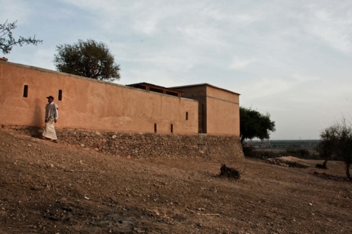 Obdanište se nalazi između tri očuvana argan drveća i izdignuto na vrhu tradicionalno kosih temelja od lokalnog kamena. Ravni krov od drveta i zemlje nadvišuje spoljne zidove od cigli od blata i unutrašnje zidove od nabijene zemlje, koji su završeni sa mešavinom zemlje i gipsa.