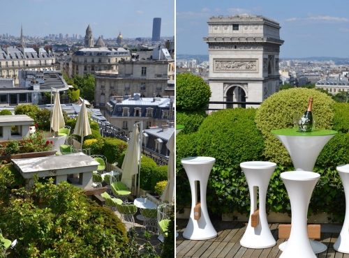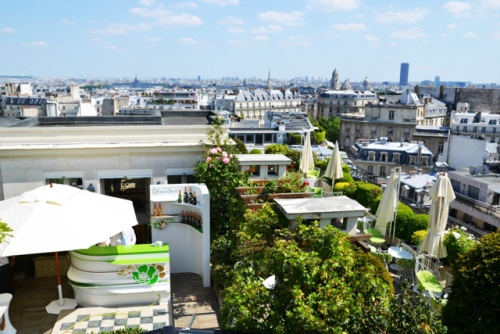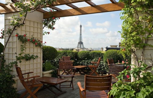 Terasa se nalazi na sedmom spratu hotela i pruža nezaboravno iskustvo opuštanja uz čašu finog šampanjca s pogledom na Ajfelov toranj i šarmantne pariške krovove.