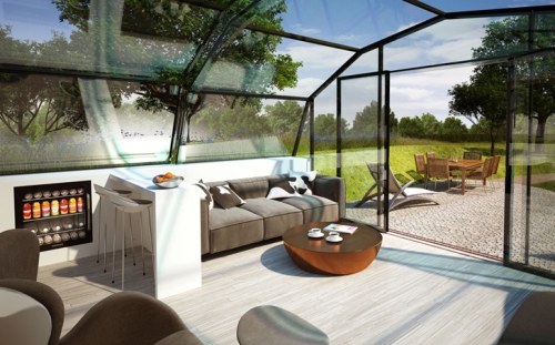 Sa staklenim zidovim, stanari će imati panoramske poglede iz njihove dnevne sobe, kuhinje, spavaće sobe, pa čak i kupatila. Za 330.000 američkih dolara, staklena kuća može da iskoči bilo gde za samo četiri nedelje, dok je više luksuznija verzija dostupna za 410.000 dolara.