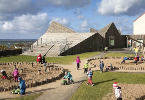 Danski arhitektonski biro Dorte Mandrup Arkitekter je nedavno završio obdanište „Råå“ - vrtić koji nudi stimulativno okruženje pored mora u Švedskoj. Zgrada obložena drvetom ima asimetričnu formu koja odražava brdovit pejzaž dina. Zakrivljene krovne ravni i fasadni elementi od drveta su takođe inspirisani tipologijom lokalnih ribarskih kuća.