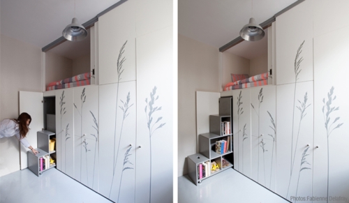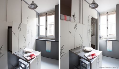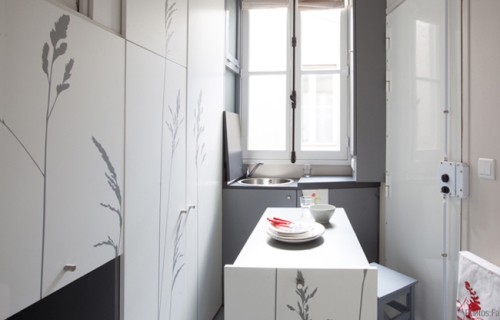 Da li ste spremni da vidite ozbljno upravljanje sa prostorom? Francuski arhitektonski biro Kikoto je renovirao ovaj maleni stan od 8 (i rečima: osam) metara kvadratnih u minimalistički dom koji se transformiše prema potrebama stanara. Plakari, kreveti, stolovi, pa čak i biblioteka su efikasno upakovani u jednu strukturu i iskaču nalik različitim delovima jednog švajcarskog noža!