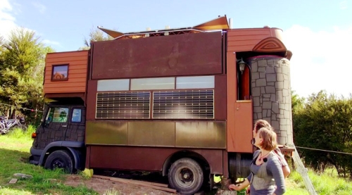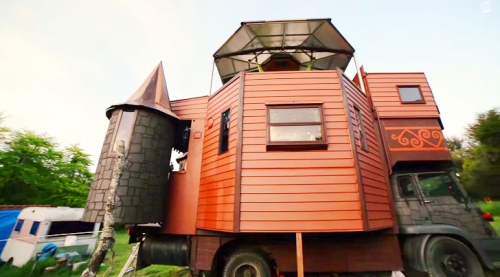 Ova čudna vanmrežna kuća bi izgledala kao obična kuća na točkovima da ne postoje dve kule na vrhu. One se mogu rotirati prema unutra kada je kuća u putnom režimu, ali kada je parkirana, kuća na kamionu se transformiše u maleni magični dvorac.