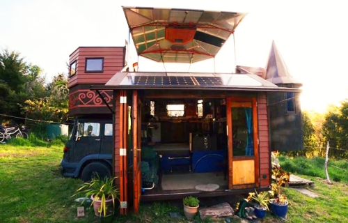 Tročlana porodica je odlučila da izgradi kuću koja bi odgovarala njihovim aktivnim načinom života i omogućila im da putuju bez potrebe da prave kompromise na kvalitet života. Njihov dvorac-kuća ima lepo izrađene životne i radne prostorije, kuhinju i sve pogodnosti i skladišteni prostor koji su potrebni za udoban život.