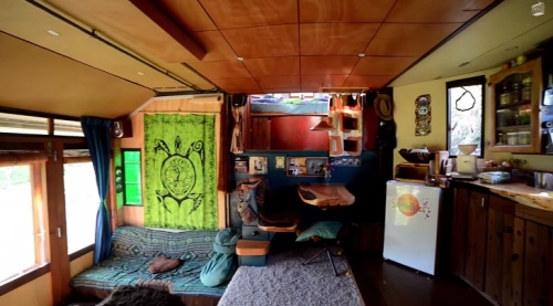 Kule funkcionišu kao kupatila - levo smešta kompostni toalet, dok su tuš i mala veš-mašina smešteni u drugom kupatilu. Solarni paneli na krovu se koriste za zagrevanje vode, dok rezervoari ispod kamiona služe kao cisterne za kišnicu.