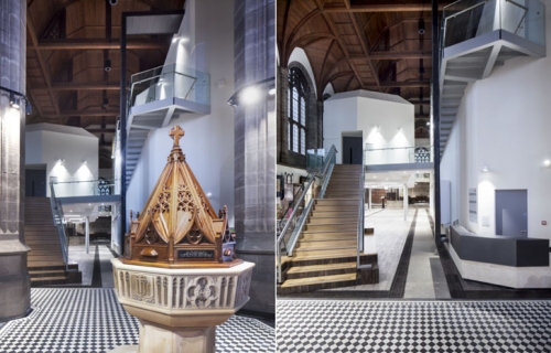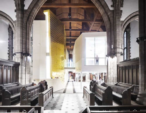 Arhitektonski biro OMI Architects je nedavno renovirao crkvu „All Soul“ u Boltonu u Velikoj Britaniji, tako što je ubacio u njen naos dve višenamenske kapsule koje obezbeđuju prostor za biblioteku, sale za sastanke, učionice, izložbene prostore, pa čak i teretanu!