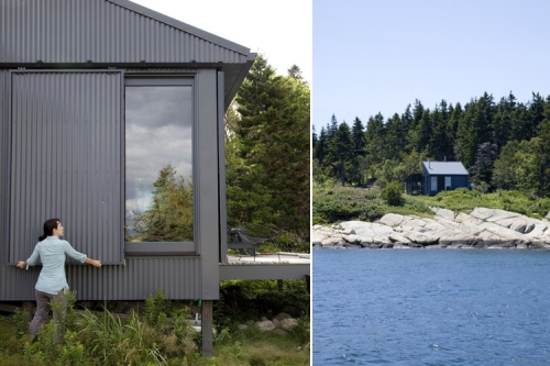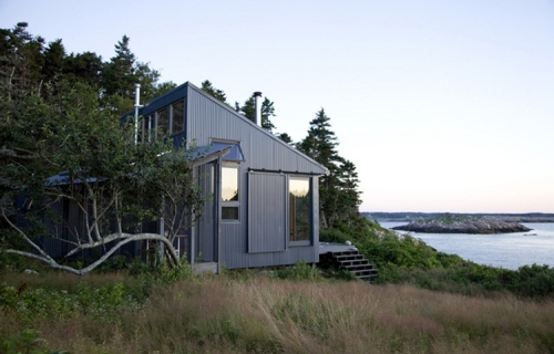 Ova malena vanmrežna koliba na priobalnom ostrvu u američkoj državi Mejn je skoro u potpunosti samodovoljna. Projektovna i izgrađena od strane Alek Porter za njenog oca, kuća poseduje kosi krov i umotana je u prepoznatljivu plavo-sivu fasada od valovitog metala.