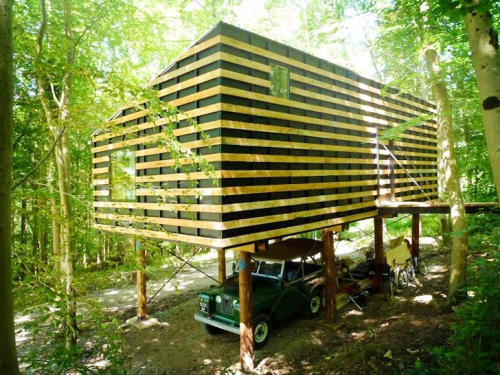 Arhitektonski biro iz Velike Britanije Invisible Studio je izgradio svoje nove kancelarije koristeći neosušeno drvo uzgajano u obližnjoj šumi. Nova dvospratna struktura se nalazi u blizini grada Bat u Engleskoj i izgrađena je bez zapošljavanja stručne radne snage, sa minimalnim crtežima i kroz improvizaciju. Ukupna cena objekta je izašla 25.550 američkih dolara, uključujući materijal i rad.