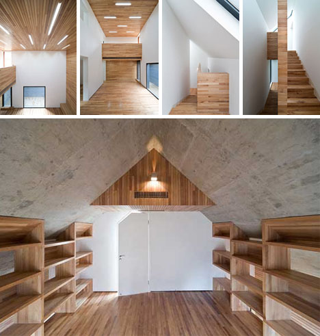 Unutar ove modernističke kuće, bela boja, drvo i beton su dominantni elementi dizajna enterijera, spajajući jednostavnu toplinu i mali obim sa modernim obradama površina.