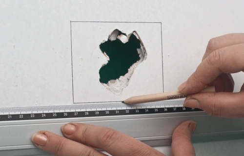 Započnite korišćenjem kružnog sekača ili testere za gips kako biste oblik rupu doveli do pravougaonog oblika. Tamo gde je to moguće, isecite postojeći gipsani zid do sredine nosećeg profila. Ovo će obezbediti podlogu za pravilno pričvršćivanje novog komada gipsanog zida. U slučaju kada nemamo postojeći profil koji možemo iskoristiti, upotrebite mali komad profila ili drveta duž ivica rupe. Postavite profil u zidu šupljine uz zadnju stranu postojećeg gipsanog zida i prčvrstite ga vijcima.