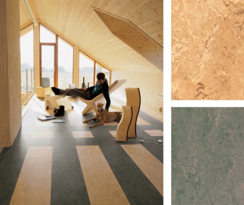 U potrazi ste za drugim izborom poda od prirodnih materijala? Možda će vam se dopasti Marmoleum (brendirano ime za pod od linoleuma). To je prirodni oblik linoleuma napravljen od lanenog ulja, brašna od drveta, kolofonijuma, krečnjaka i jute i mnogo je više ekološki materijal od tipične podne obloge od vinila ili linoleuma. Odlična stvar kod Marmoleuma je da je on dostupan u gotovo bilo kojoj boji i dezenu koji možete da zamislite.