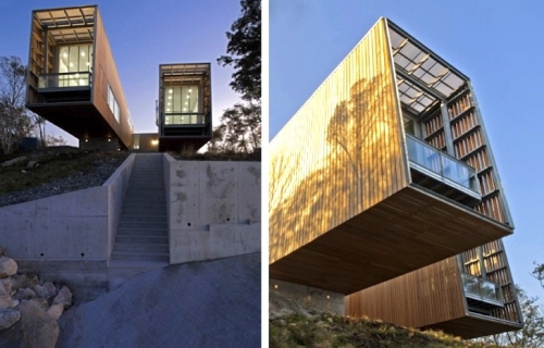 Suočeni sa ekstremnom primorskom klimom u Novoj Škotskoj, arhitektonski biro MacKay-Lyons Sweetapple Architects je projektovao ovu konzolnu dvotrupnu kuća za četvoročlanu porodicu.