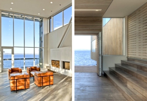 Kuća je osmišljena kao par „dvogleda“, a dva paviljona takođe podsećaju na trupove brodova koji su povišeni tako da omoguće prolazak užurbanim talasima ispod njih.