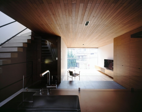 Kuća takođe sadrži i studio u prizemlju za muža koji je modni fotograf. Pošto se kuća nalazi u zoni kojoj preti opasnost od poplava, arhitekte iz biroa APOLLO Architects & Associates su podigli ulaz za 80 centimetara.
