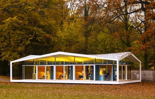 Arhitektonski biro Barkow Leibinger je projektovao Fellow paviljon tako da se lagano smesti na tlo i što manje uznemirava živopisni jezerski pejzaž iz 19. veka. Paviljon je izgrađen kako bi zamenio staru kupaonicu, a staklena i čelična struktura je završena sa savijenim krovom od čeličnih greda koji aludiraju da zabatne krovove istorijskih vila ovog kraja. Četiri čelična I stuba koji imaju ulogu i kišne kanalizacije nose krov.