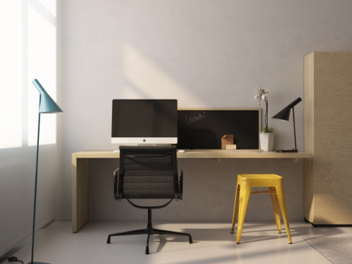 Spavaća soba je opremljena i sa radnim stolom koji takođe ima svoju privatnost zahvaljujući transformabilnom zidu koji odvaja ovaj prostor od dnevne sobe.