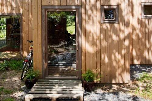 Glavni ulaz u kuću u Thuinu, koji se nalazi na jednoj od mnogobrojnih fasadnih ravni objekta, ima ulazni deo napravljen od recikliranih drvenih paleta koje daju domu jednostavan, opušteni osećaj.