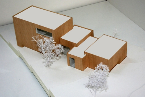 Njegov dizajn je jednostavan, fleksibilan i ekonomičan, a njegov topli drveni enterijer je pun sa prirodne svetlosti koja dolazi iz svih uglova. Ova geometrijska kuća je izgrađena od međusobno povezanih drvenih kutija, što rezultira u ukupno 14 različitih fasada.