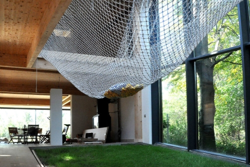 Bez obzira na vremenske prilike, deca i roditelji mogu da se igraju na mreži, koja je ujedno i salon, uz osećaj kao da su napolju. Pored toga, kuća je završena sa zelenim krovom i uskoro će posedovati fotonaponski sistem.