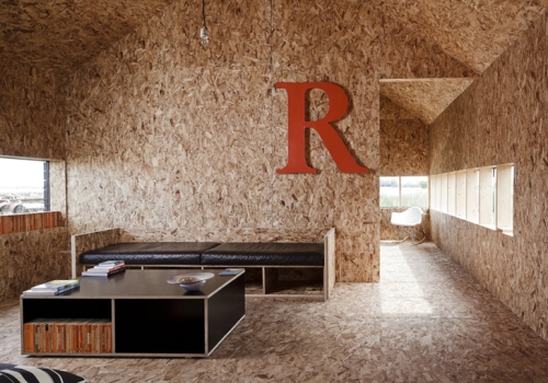 Biro je unutra prostor zadržao minimalnim sa organskim osećajem koji su pružili zidovi, plafoni i podovi obloženi sa OSB pločama. Komprimovani slojevi drvenih ploča imaju obrazac godova koji evociraju osećaj naslaganih bala slame koji su se nekada čuvali u ambaru. Tekstura takođe služi dekorativnoj svrsi, puneći svaku sobu sa tonom bez potrebe za jeftinom umetnošću ili nameštajem.
