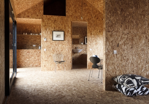 Arhitekte su opremile prostor sa minimalističkim nameštajem koga je lako pomerati kao što je pravougaoni drveni kauč, jednostavni stočići za kafu i prosti trepzarijski set, koji su povezani sa toplotom unutrašnjosti od OSB ploča.