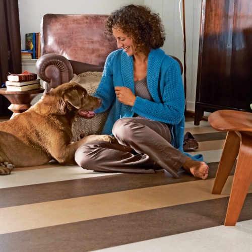 Marmoleum Dual Tile linija nudi još više opcija, sa raspoloživih 30 dezena koji su vodootporni, izdržljivi, i mogu da traju više od 40 godina sa pravilnom negom. Možete izabrati standardne ploče 30 sa 30 santimetara ili monolitne pločice 50 sa 50 santimetara.