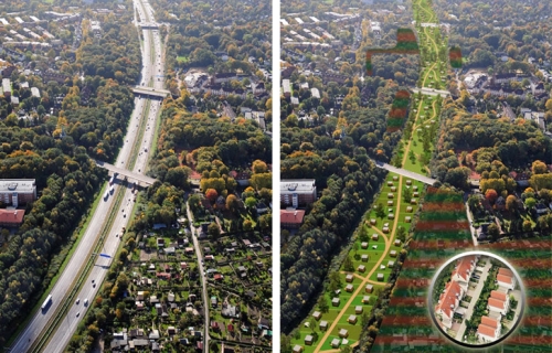Javni zeleni prostori u obliku tri nova parka će uskoro prekrivati veći deo čuvenog Auotbahn-a (nemačkog autoputa), dok on prolazi kroz Hamburg. Putna mreža dugačka preko 12.000 kilometara prolazi kroz centar Hamburga, deleći grad na zapadni i istočni deo sa bučnim saobraćajem.