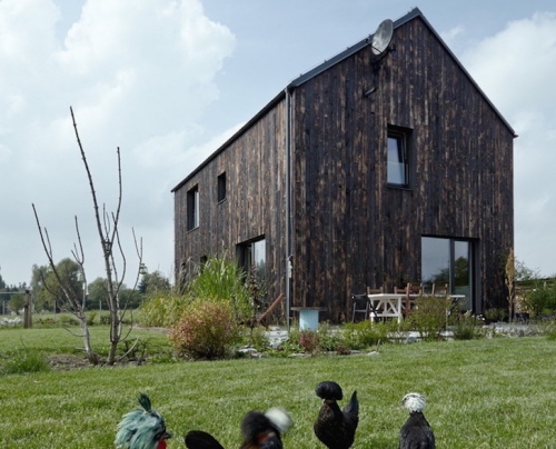 Biro Mjölk Architekti je projektovao Ugljenisanu kuću za Katku i Honza, njihova tri sina i ljubimce. „Katka i Honza kuvaju sve vreme“, kažu arhitekte. „Zato su oni odličili da spale svoju kuću takođe - ali ne do temelja, samo svuda okolo.“ Vertikalne drvene daske su nejednako ugljenisane kako bi se stvorio raznobojni izgled.
