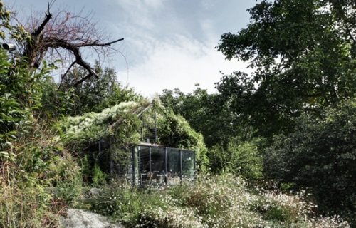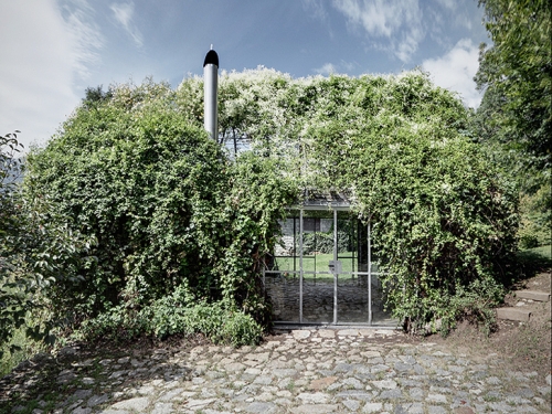 Biro Act_Romegialli je postavio lagani čelični okvir oko zgrade garaže, omogućavajući nizu biljaka i vinove loze da raste preko zidova i krova objekta, pretvarajući zgradu u mirno i povučeno mesto za boravak.