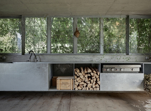 Arhitekte su koristili jednostavan, rustičan materijal za stvaranje male kuhinje za kuvanje obroka za konzumaciju u bašti. Reciklirane drvene daske oblažu pod, dok se veliki prozori otvaraju ka bujnom dvorištu preko pocinkovanik čeličnih ramova, spajajući unutrašnjost studija sa prirodom.