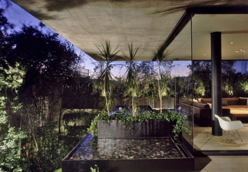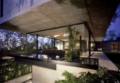 Kuća je smeštena u Meksiko Sitiju i okružena je sa zelenilom, što stanarima pruža osećaj boravka u prirodnijem ambijentu. Teški, pravolinijski betonski volumen drugog sprata štrči preko staklenog dnevnog boravka, koji se povezuje sa bazenom i travnjakom. Balkoni na drugom spratu su zasađeni sa zelenilom kako bi se povećao efekat divljeg okruženja.