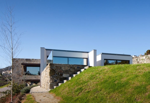 Kuća RM je smeštena u severnom Portugalu, i ona je dvospratnica koja meša lokalni arhitektonski jezik sa modernim dizajnom. Kutijasti volumeni kuće se sastoje od dve prethodno razrušene kamene zgrade, sa belim, modernim dodatkom koji je usendvičen između dva volumena.