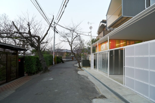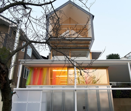 Trospratna kuća male površine stoji usred susedstva prepunog kuća iz 1930-tih godina na padini planine Ikoma i odlukuje je materijali kao što su betonski zidovi, prozirni krov i valovita metalna fasada. Uprkos ovome, projektantski tim je koristio suptilne strategije kako bi uklopio kuću sa starijim kućama komšiluka.