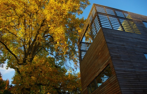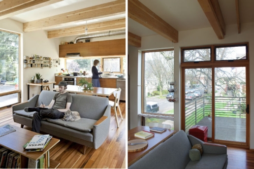 Sve što je potrebno za udoban život je tu - sve efikasno upakovano u 65 metara kvadratnih prostora. Kuća je izgrađena sa strukturno izolovanim panelima (SIP) i nalazi se na maloj ugaonoj parceli koja ima taman toliko prostora da se u njoj smesti i radni vrt. Kuća je nagrađena sa LEED Platinum sertifikatom.