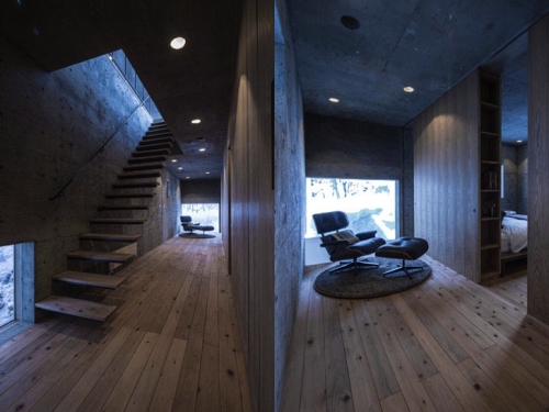 Veliki panoramski prozori uokviruju prelepe poglede na snegom pokrivenu planinu Jotei, dok su mali prozori stateški plasirani u celoj kući kako bi pustili dovoljne količine prirodne svetlosti u enterijer.