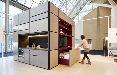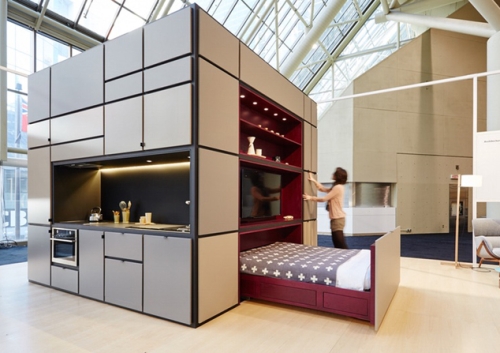 Kocka može jednostavno biti podignuta i postavljena u bilo koji postojeći stan. Verzija koja je bila prikazana na Nedelji enterijera u Torontu je izgrađena van lokacije i zatim dostavljena u salu putem kamiona.
