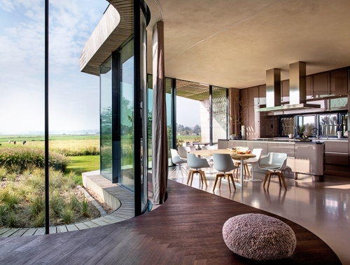 Kuća je izgrađena na kraju selu u severnoj Holandiji, i ona integriše modernu tehnologiju sa prirodnim, ekološkim materijalima kako bi se dobio životni prostor koji je energetski efikasan i bezbedan, kao i pogodan i lako upravljiv.