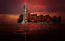 Temelj (tri „noge”) ove višespratnice počivaće u vodi, a samo jednim delom (mostićem) biće povezana sa kopnom. Što znači da će zgradu okruživati marine i pristaništa za potrebe svih stanara koji imaju vlastite jahte (ali i za one koji im dođu u posetu). Na vrhu tornja nalaziće se tripleks nazvan „vila na nebu”, a na krovu heliodrom.