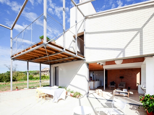 Kuća MMMMMS, projektovana od strane arhitekata Ane i Eugena Baha, je kombinacija modernog doma i stare seoske kuće ranije poznate pod katalonskim imenom „masia“. Sa svojom kamenom oblogom i kosim krovom, kuća podseća na narodno graditeljstvo, dok njena unutrašnja organizacija prostora prati obrazac industrijskog skladišta.