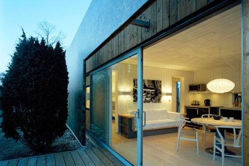 Ova prelepa Kuća Kleka je napravljena od lokalnog drveta i površine je 50 metara kvadratnih. Tri strane kuće je maskirano u vinil oblogu koja je odštampana sa fotografijama istog drveća koje raste oko kuće. Ova inovativna ideja služi ne samo kao kamuflaža koja pomaže stapanju kuće sa okolinom, već i filtrira svetlo i dodaje nivo privatnosti enterijeru.