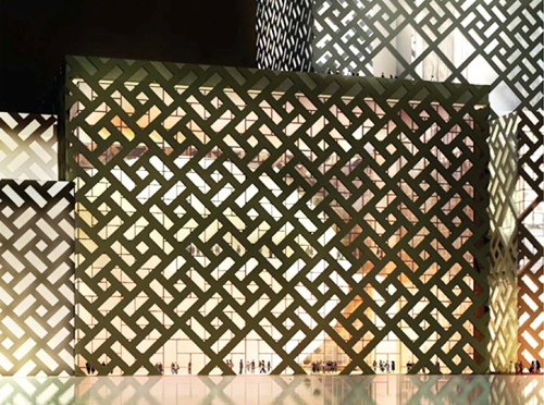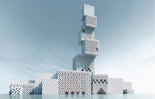Prigodno nazvan Kockasti neboder je delo arhitektonskog biroa Godefroy Tang Architects, i on je napravljen od devet kocki različitih veličina naslaganih u vertikalnoj formaciji, sa fasadom svake kocke koja je pokrivena sa različitim tradicionalnim motivima dizajna. Visoki neboder će sadržati ukupno 34 liftova i 16 eskalatora.