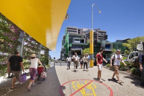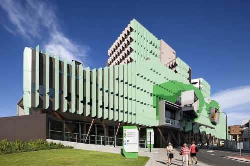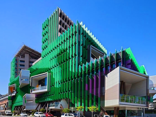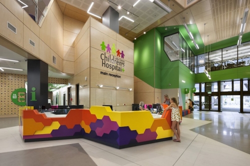 Nedavno završena šarena i zeleno orijetnisana Dečija bolnica u Brizbejnu, Australija, osporava ideju da svi medicinski objekti moraju biti sterilni i negostoljubivi. Specijalistička pedijatrijska univerzitetska bolnica je delo saradnje između biroa Lyons iz Melburna i brizbejnskog arhitekte Konrada Gardžeta.