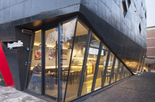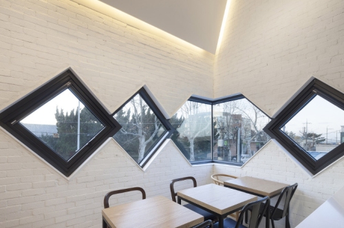 Zgrada, koja smešta kafić, hotel, kao i dom za investira i njegovu porodicu, je izgrađen sa malim budžetom od 600 miliona KRW, što je oko 500.000 evra. Arhitekte kažu da je ograničeni budžet bio izazov, ali izgleda da su uspeli da inkorporiraju sve tri željene funkcije u jedan prostor, i to neprimetno.