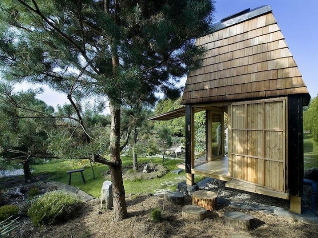 Kućica deluje kao da je namenjena za samo dve osobe koje udobno mogu da dele svoje tajne uz šolju toplog čaja. Prirodni materijali koji vremenom stare su bili bitan element dizajna, pošto oni čine kuću prirodnom i toplom.