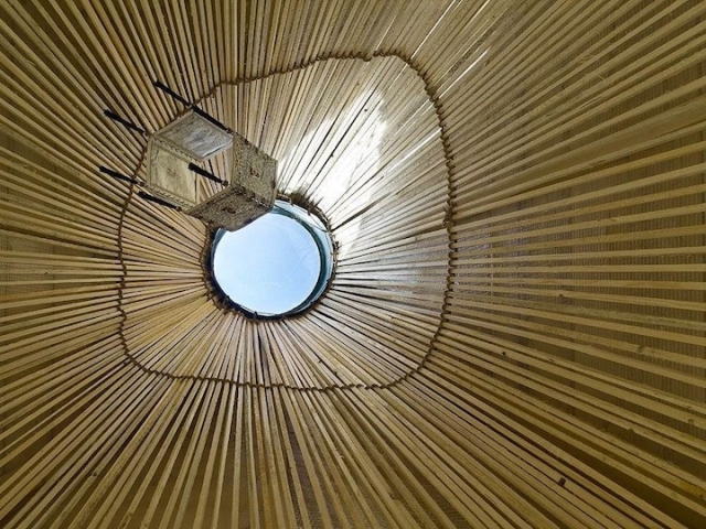 Specifični dizajn krova omogućava stvaranje okulusa u vidu svetlarnika koji uvlači potrebnu količinu prirodne svetlosti. Zanimljiva karakteristika dizajna enterijera je i obloženi svod krova od trske.