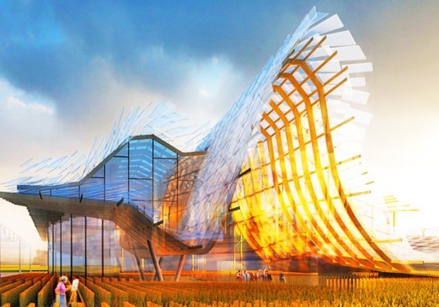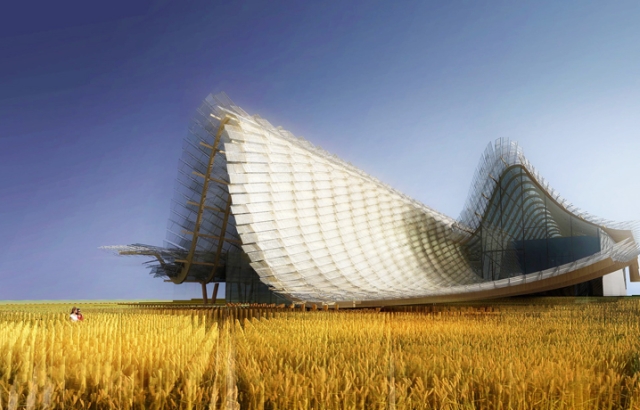 Cinhua univerzitet iz Pekinga je nedavno predstavio svoj predlog za Kineski paviljon u okviru Svetske izložbe EXPO 2015 u Milanu. Projektovan u saradnji sa njujorškim biroom Studio Link-Arc, krivudavi krov projekta podseća na bujna polja pšenice i odgovara temi izložbe o bezbednosti hrane i održivoj poljoprivredi.